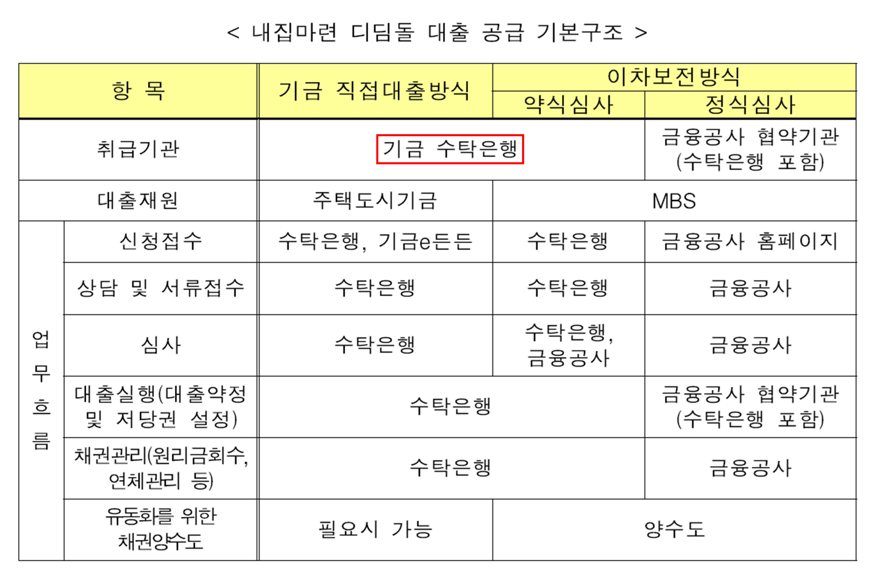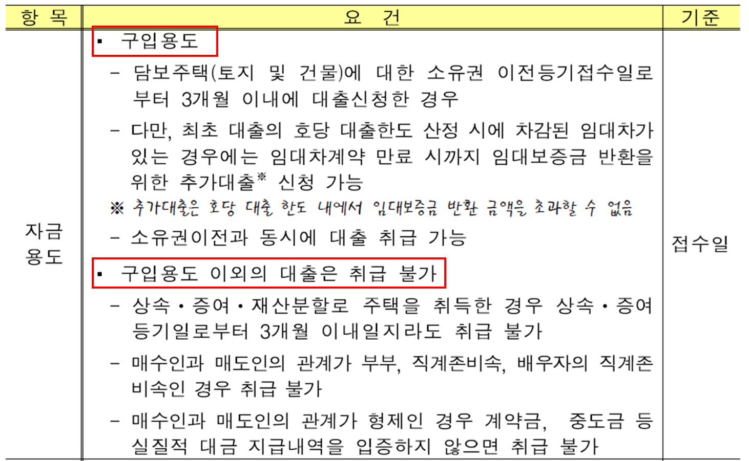 ② 대환대출 신청불가 : 기존 진행중인 주택담보대출을 디딤돌대출로 대체불가