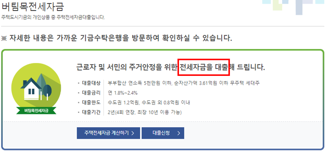 * 버팀목대출 : 전세대출을 위한 대출상품