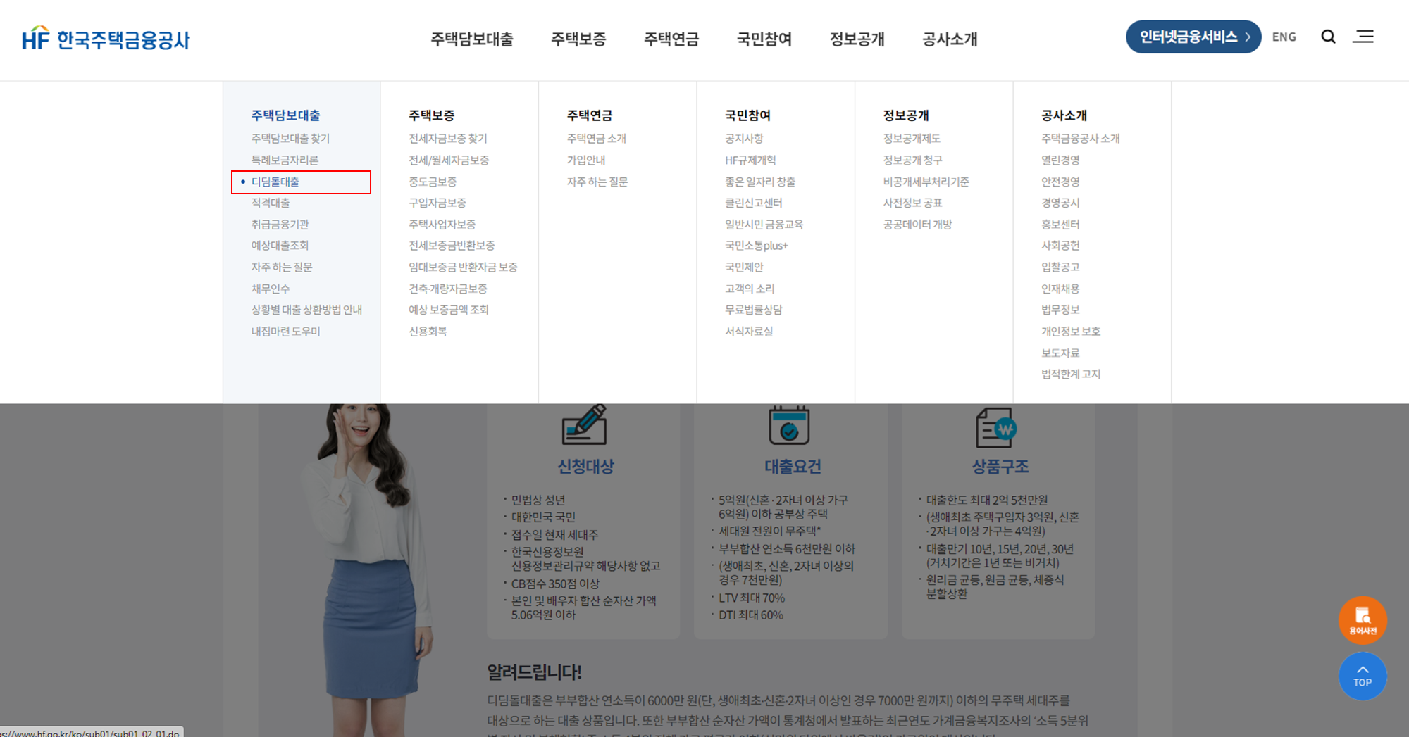 상품소개 | 디딤돌대출 | 주택담보대출 | 한국주택금융공사
