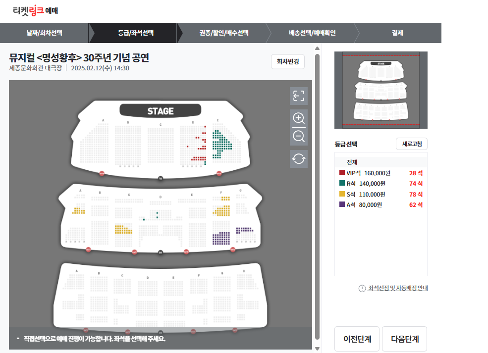 3. 예매 가능한 좌석을 선택해 줍니다.