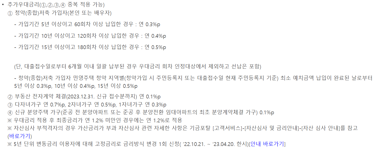 3. 다자녀가구의 경우 연0.7%p 적용가능하며, 2자녀 연0.5%p, 1자녀 연0.3%p 적용됩니다.