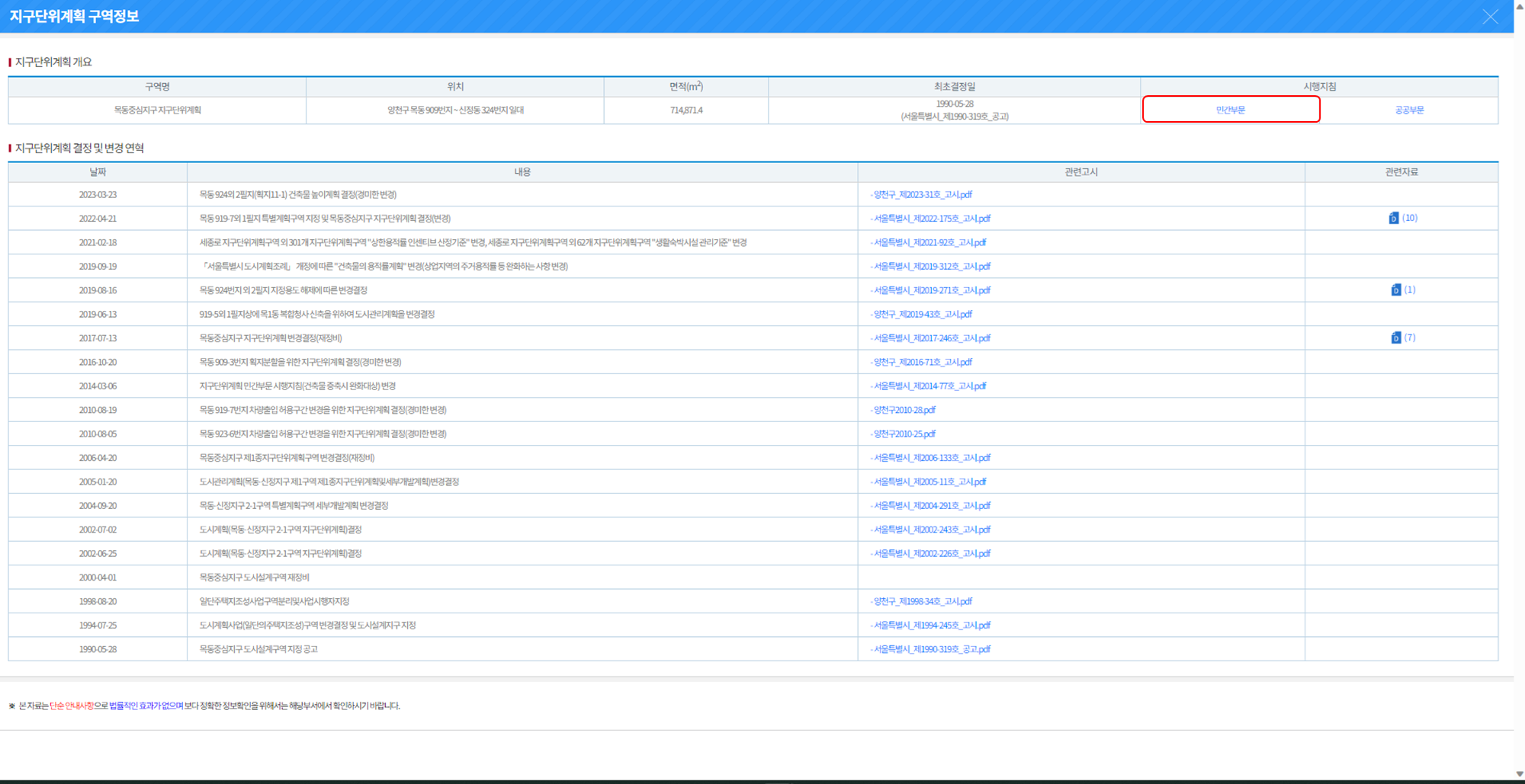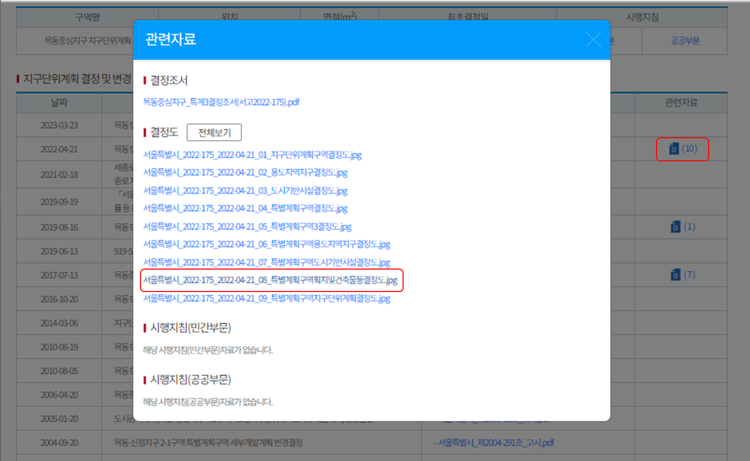 목동 지구단위계획의 경우 양천구청 방문했으나, 자료를 얻을 수 없어 서울도시계획포털을 이용했습니다.