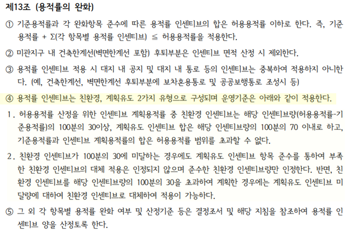 마지막으로 가장 이슈가 되는 인센티브 사항을 보도록 할게요. 기사에서도 잠깐 언급했지만, 인센티브의 경우 건축물을 올릴때 공공기여나 그 밖에 항목들을 준수할 경우 부여되는 부분이에요.