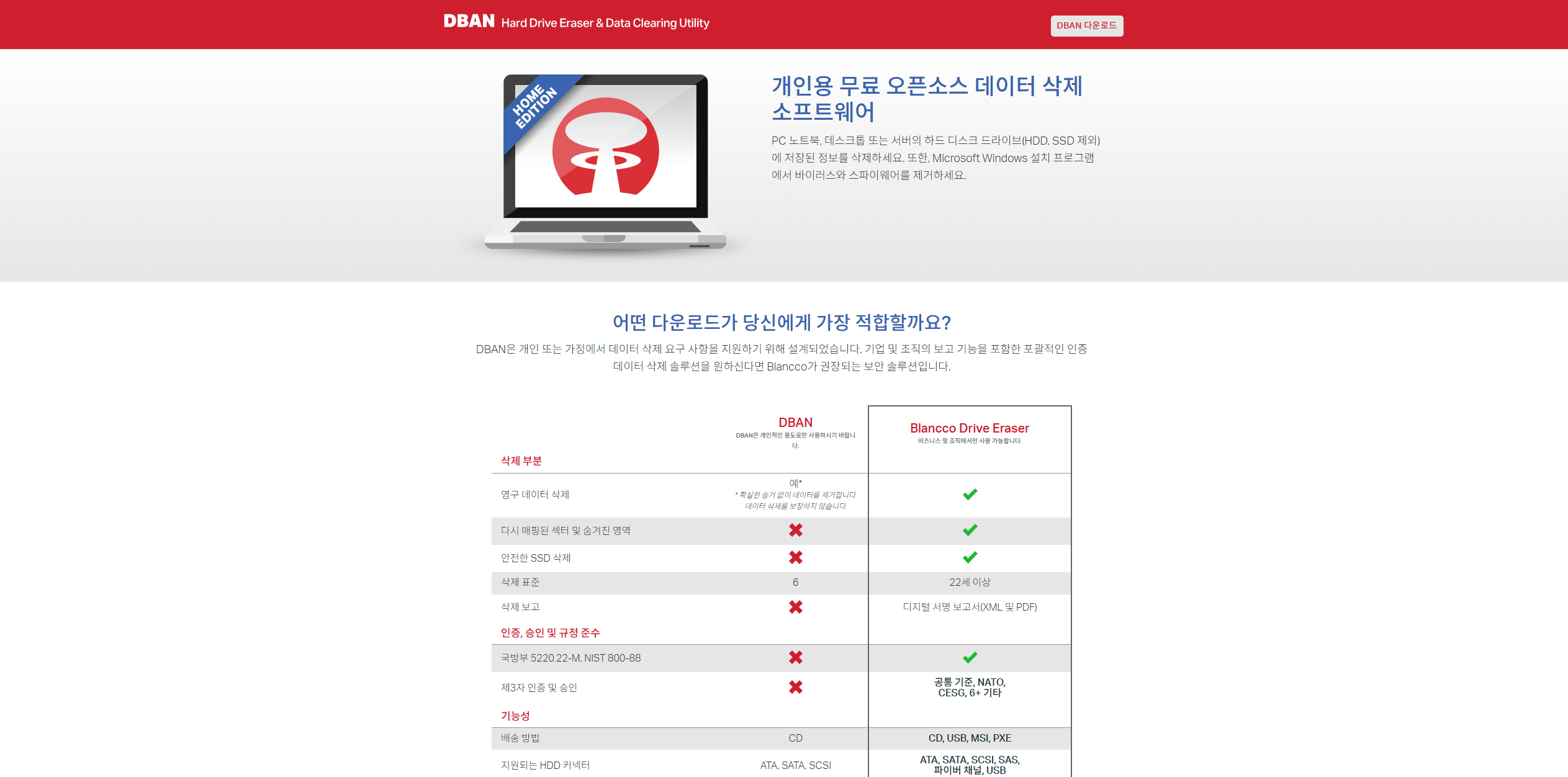 민감 정보가 남아 있을 수 있으므로 ‘보안 삭제 프로그램’을 사용하세요.