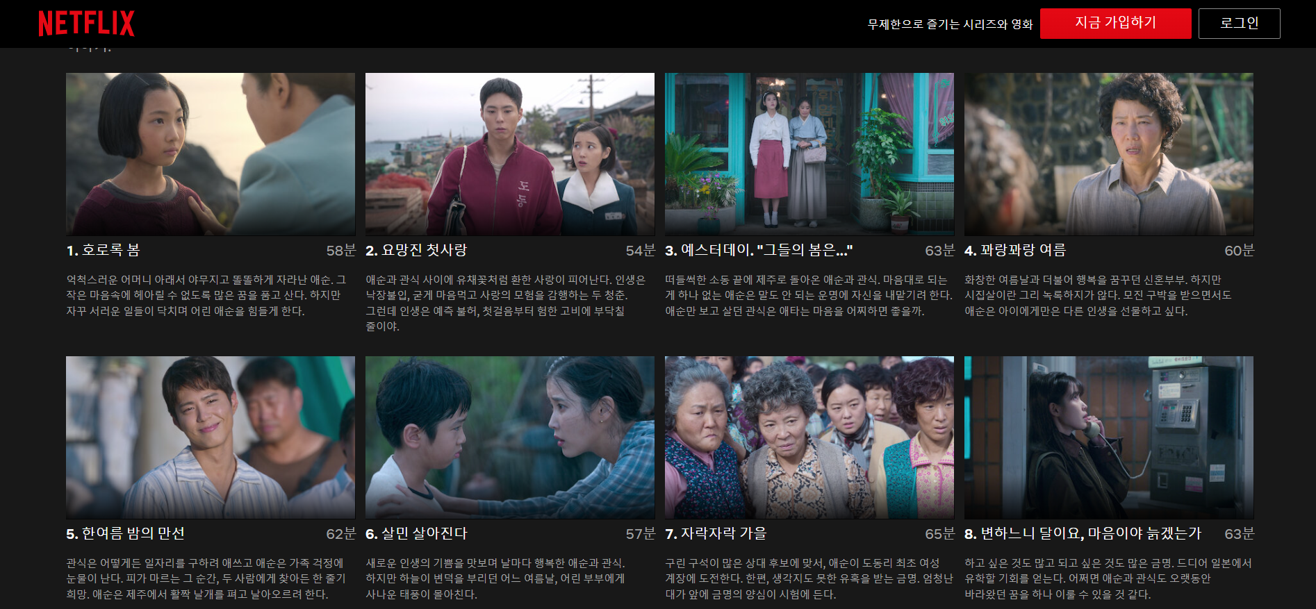 - 주제: 억척스럽지만 순수한 여성 '애순'과 그녀를 사랑하는 '관식'의 인생 여정